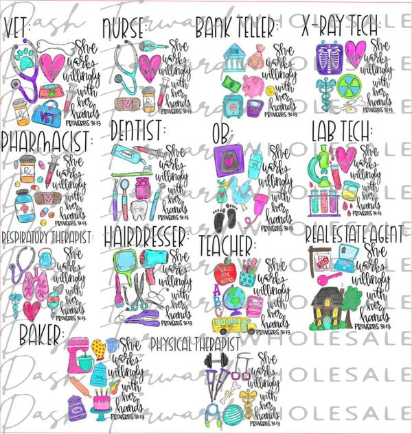 PLEASE READ!! All designs will be printed on BELLA CANVAS White Fleck tees! You can choose multiple occupations with this unique new order process! Please choose your occupaiton below!!